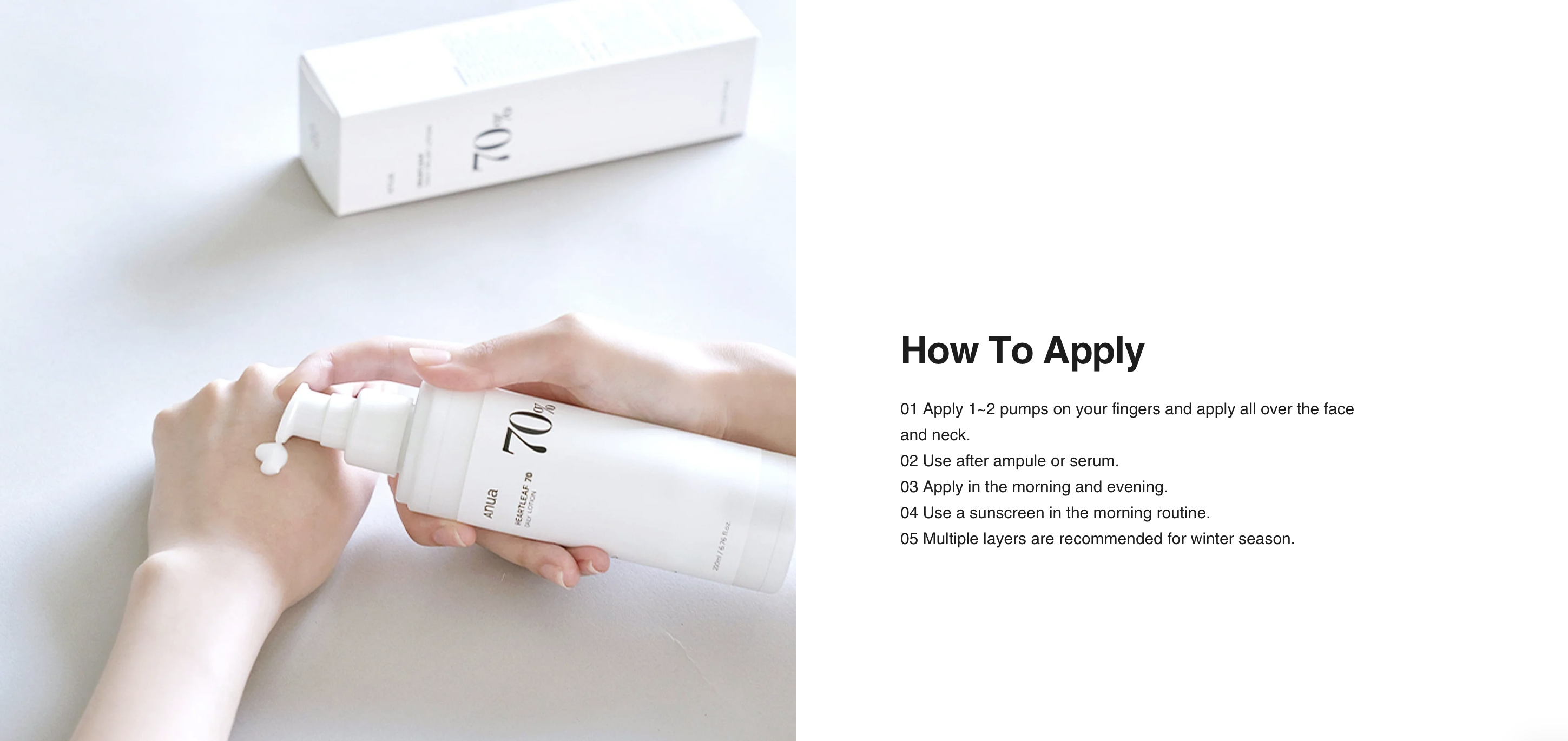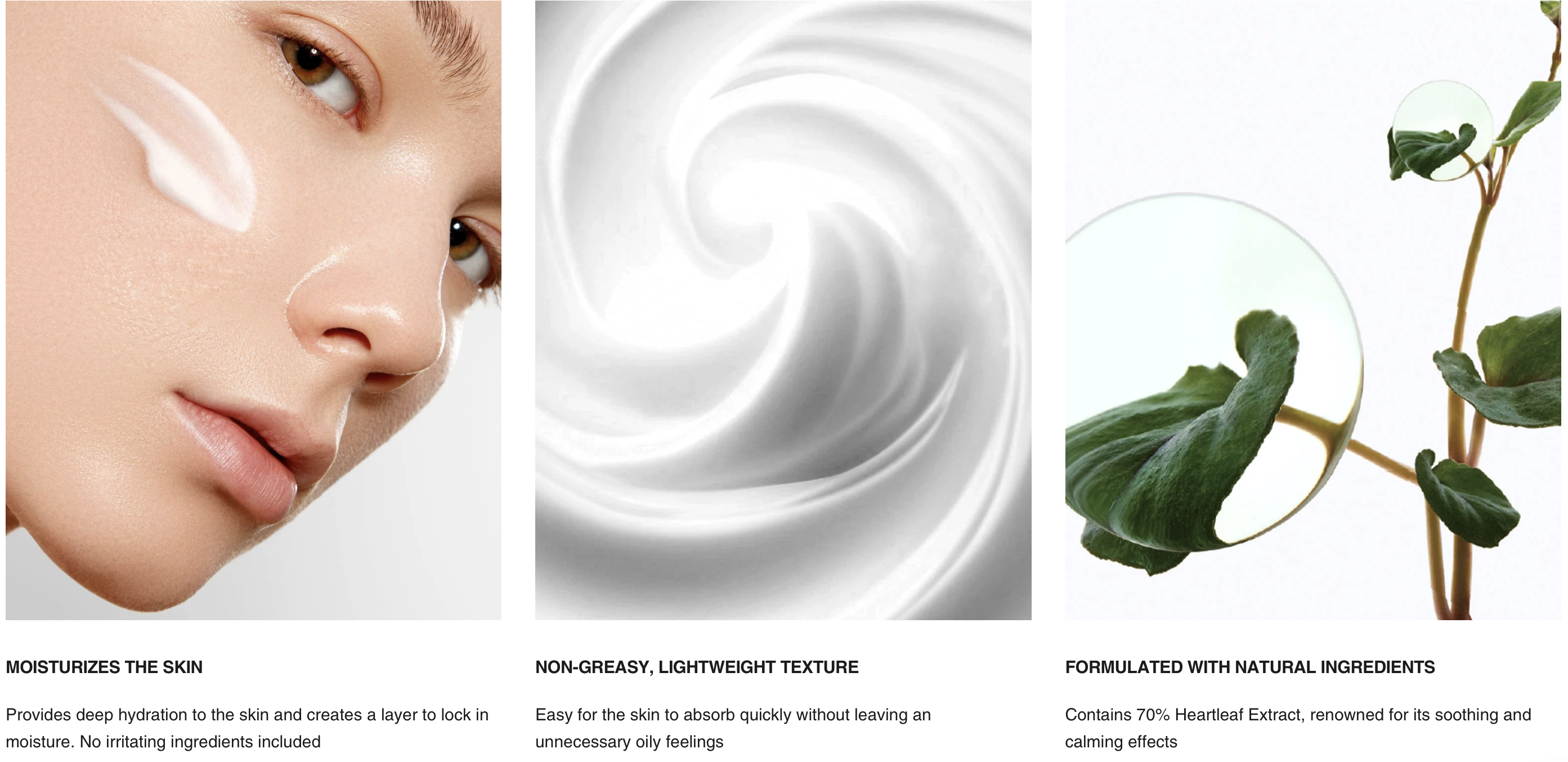 – Lotion formulated with 70% Heartleaf Extract delivers intense soothing care.