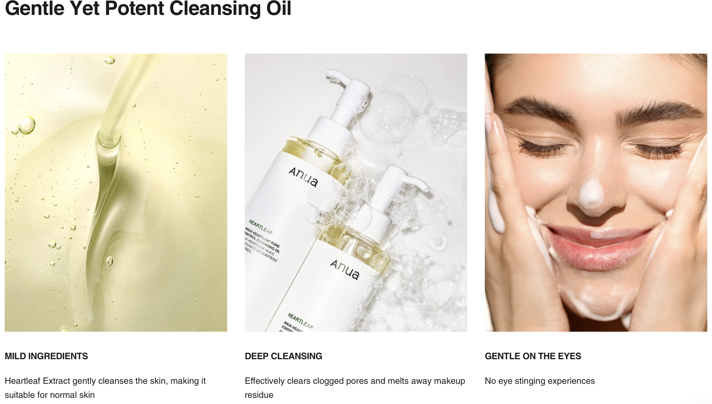 A deep cleansing oil is designed to help clear pores by removing makeup, blackheads, sebum, sunscreen, and dirt, whilst preventing pore congestion. An essential oil cleanser ideal for double cleansing. Formulated with Heartleaf extract in the lightweight formula helps keep irritations at bay.