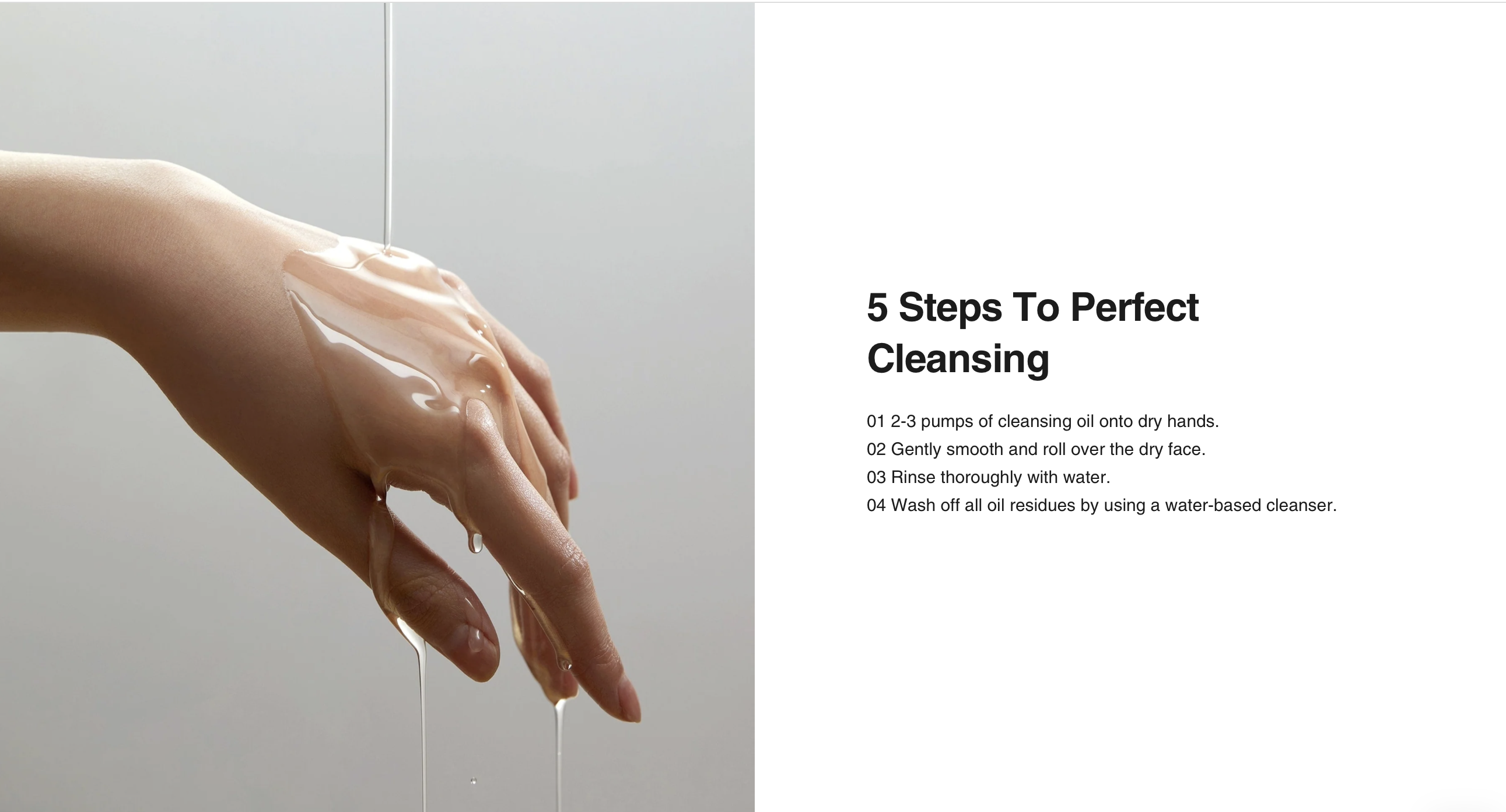 Dispense 2~3 pumps into hands. Gently massage onto the dry face in circular motions.