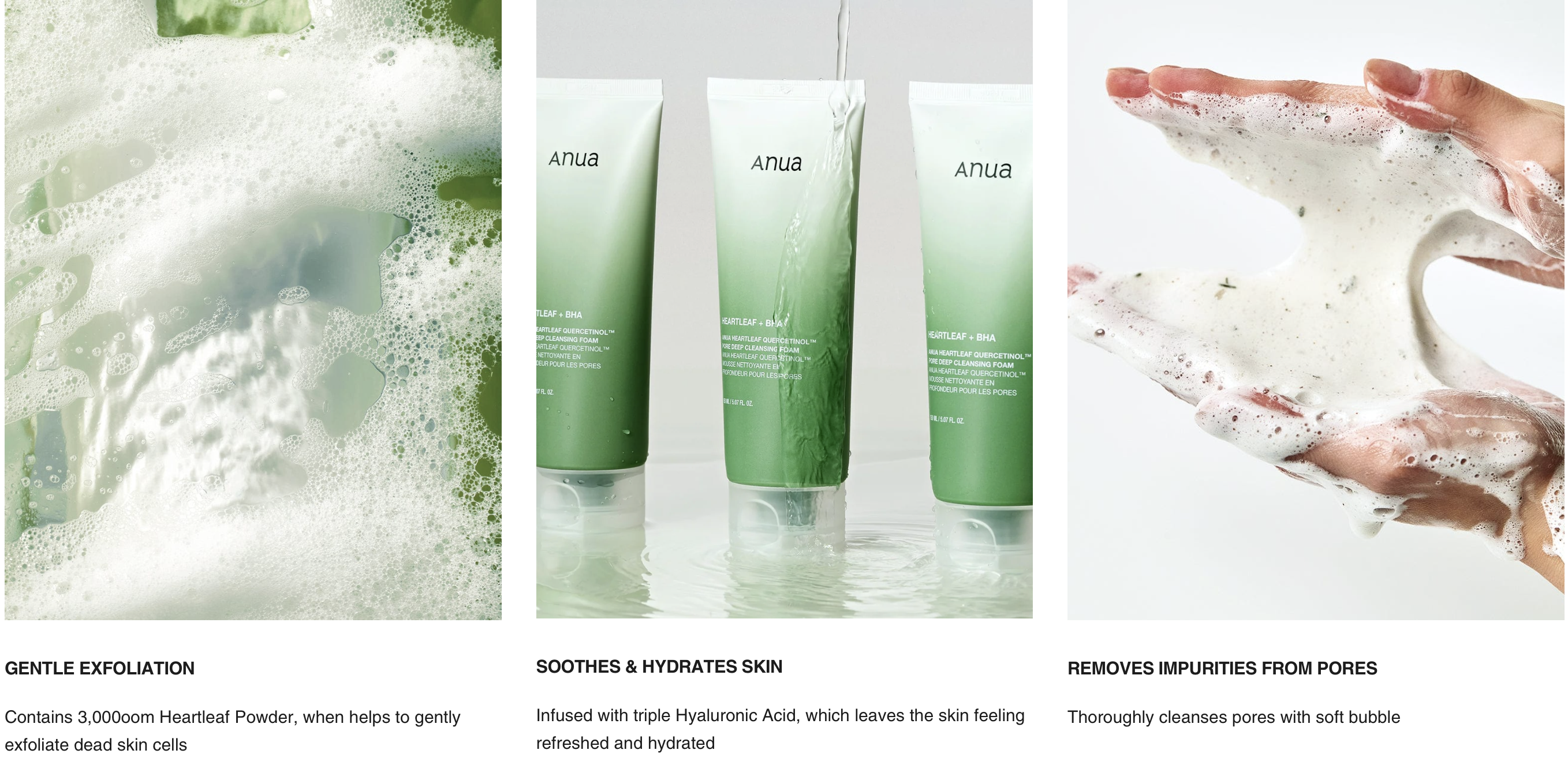 A cleansing foam formulated with Heartleaf extract and fine heartleaf powder designed to provide deep pore cleansing and gently exfoliate dead skin cells.