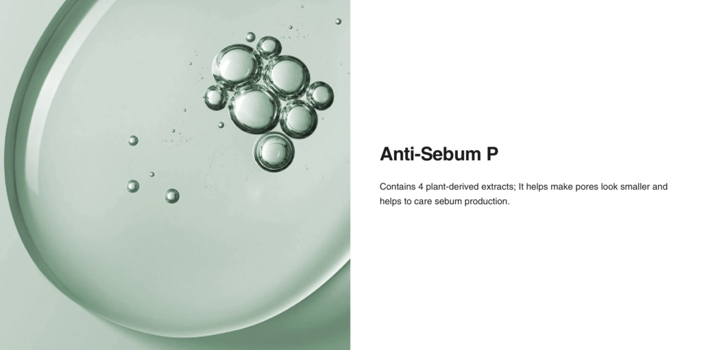 - Includes patented Anti-Sebum P (Pueraria Lobata Root Extract, Ulmus Davidiana Root Extract, Pinus Palustris Leaf Extract and Oenothera Biennis (Evening Primrose) Flower Extract) to remove excess sebum.