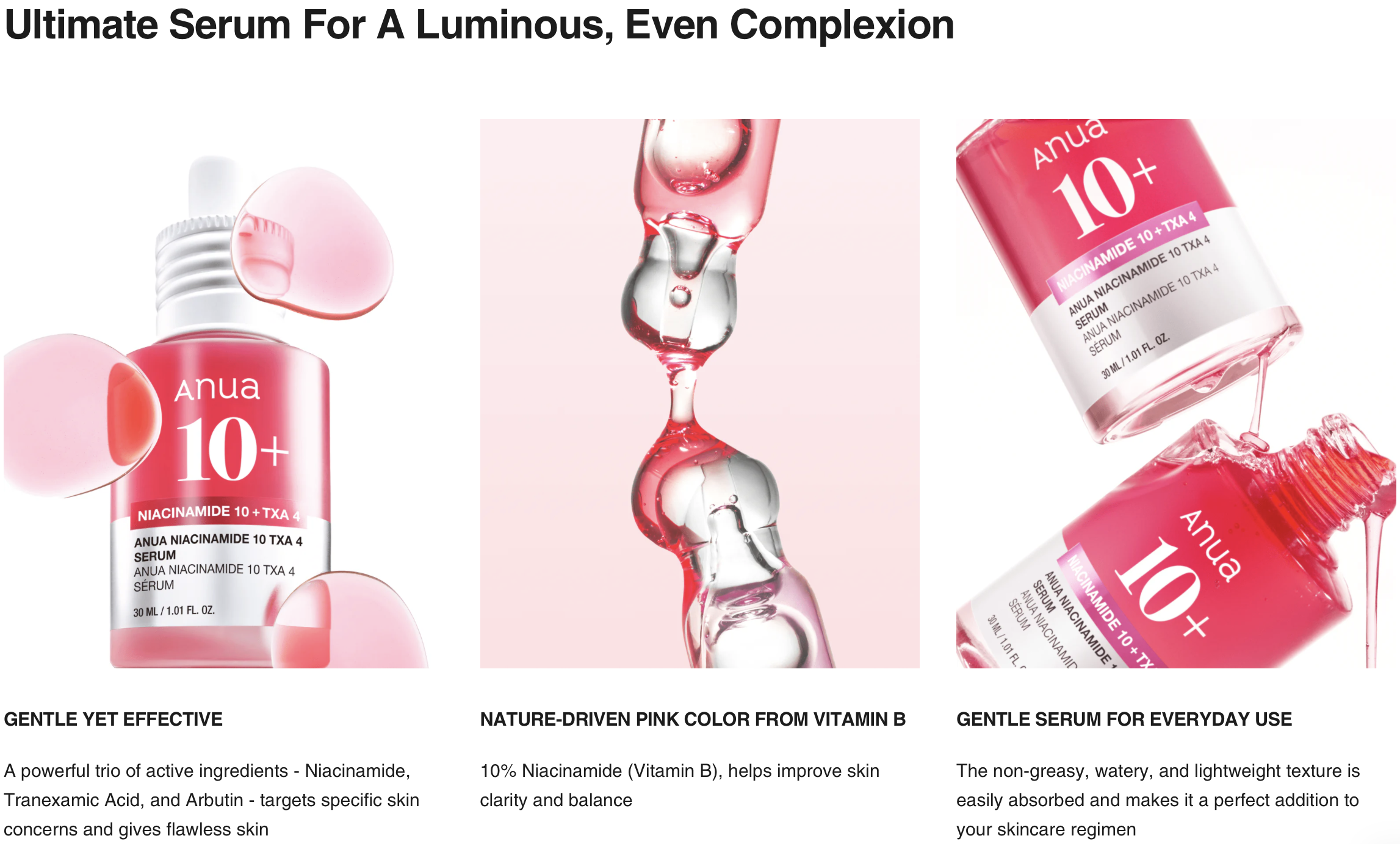 Containing 10% Niacinamide, 4% Tranexamic Acid, and 2% Arbutin, a powerful trio of ingredients to target dull skin and enlarged pores.