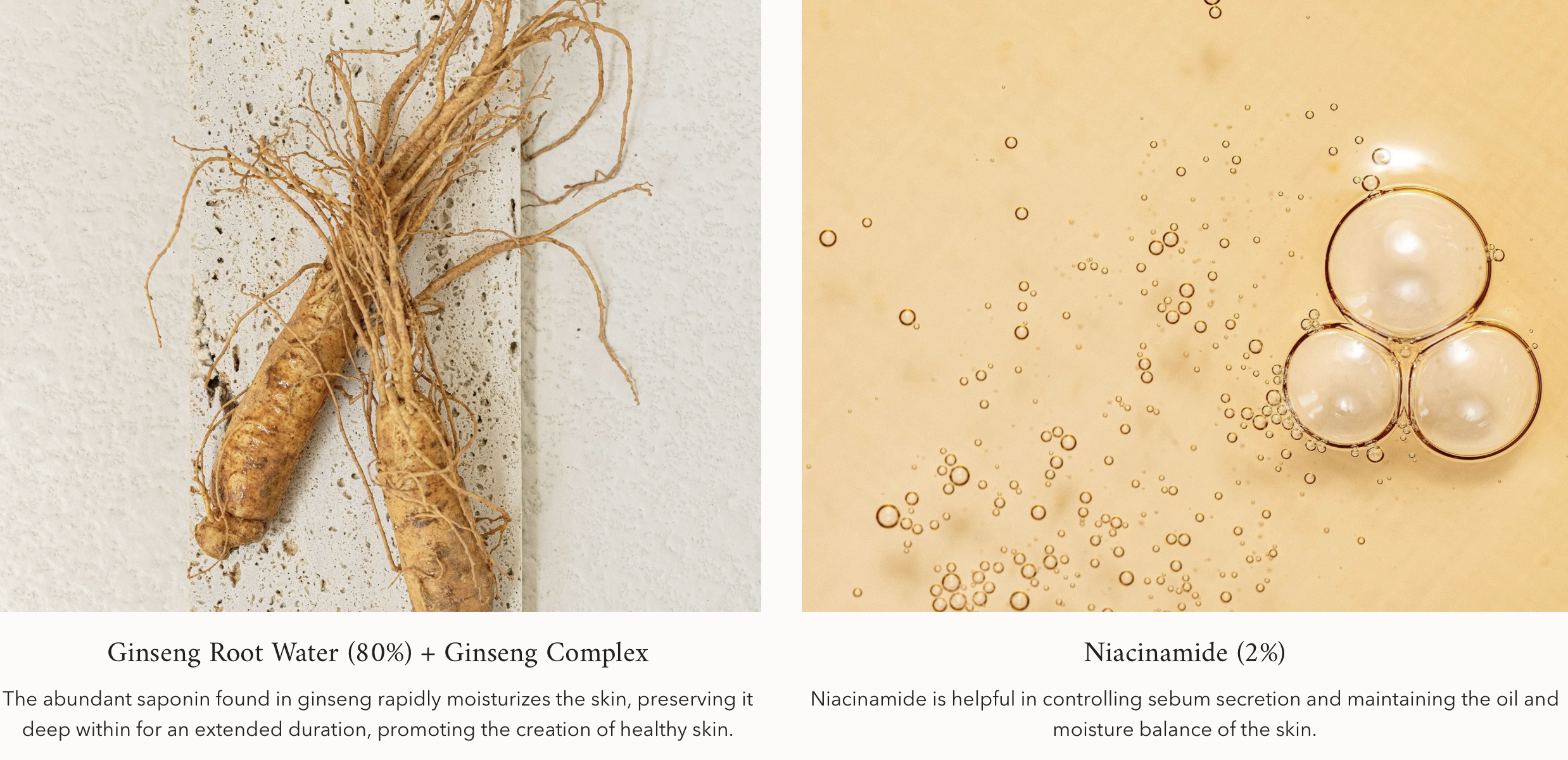 Intensive Moisture Supply Containing 80% ginseng water, it helps to maintain deep moisture in the skin for a long time and keeps the skin healthy.